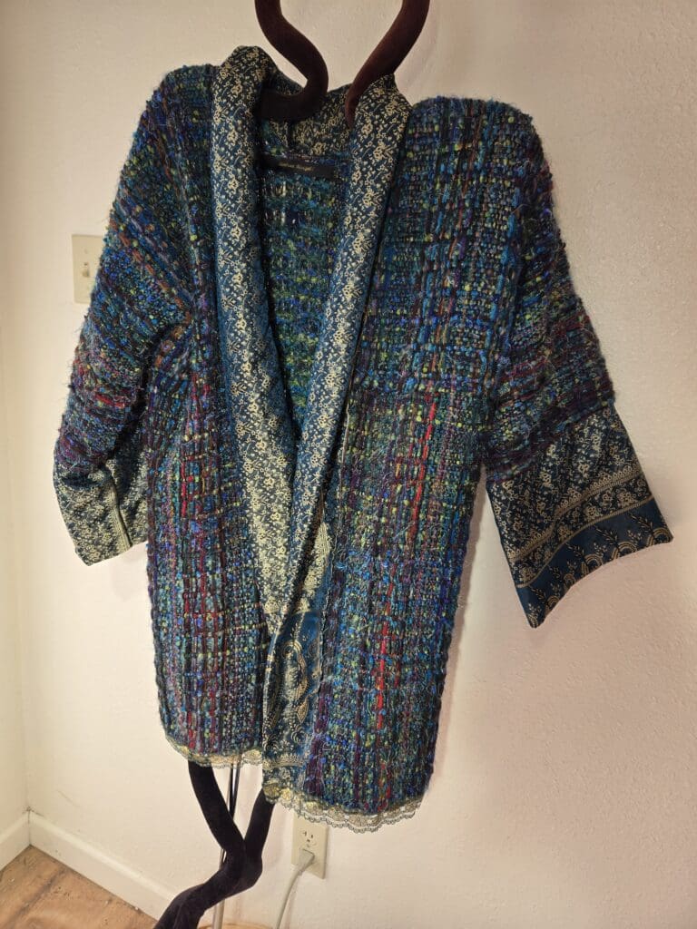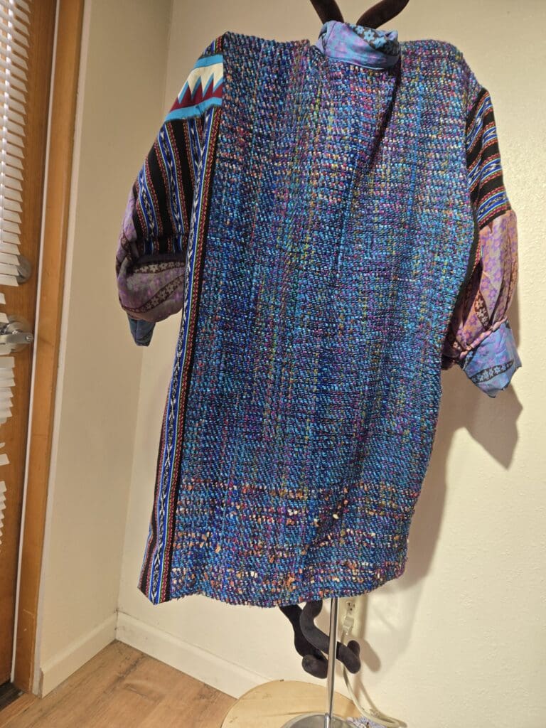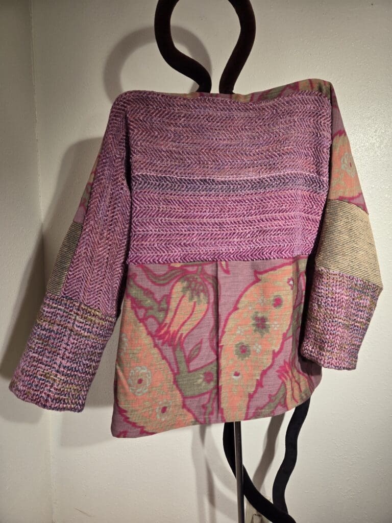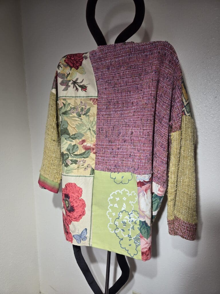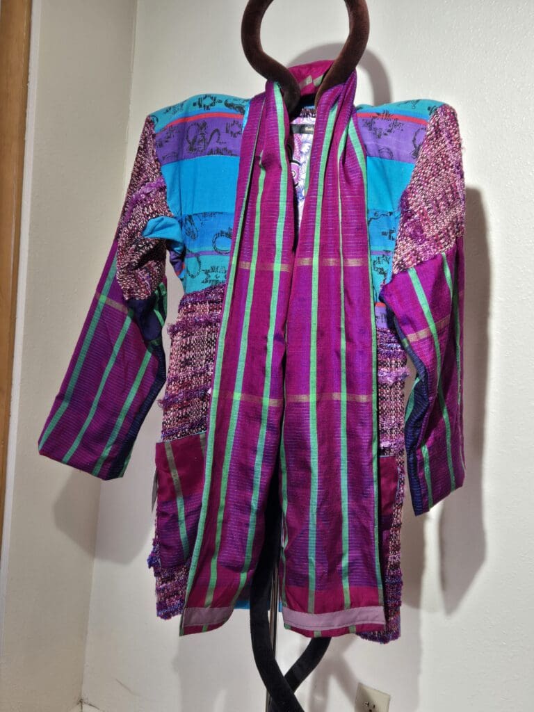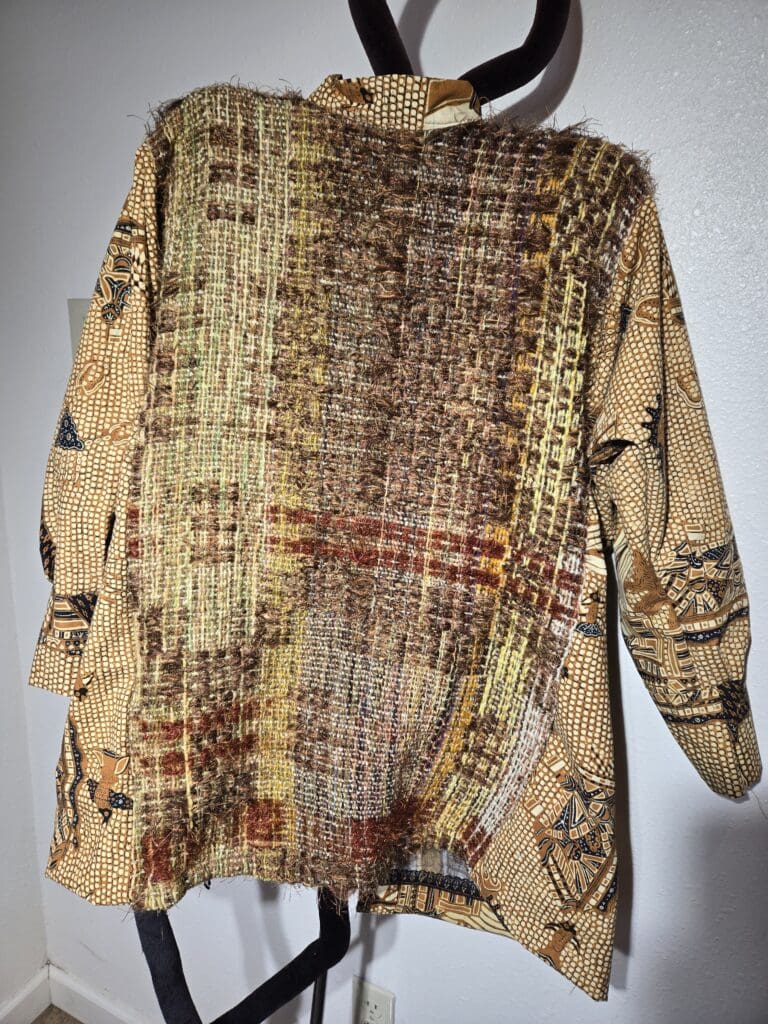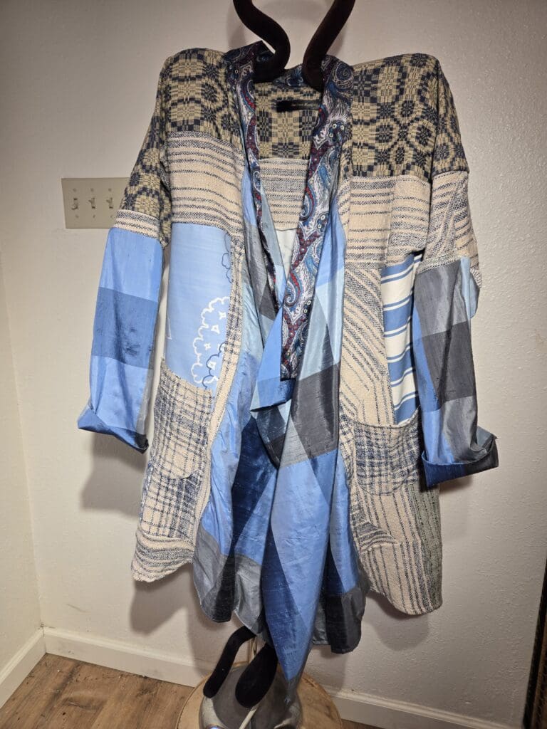 This collection includes jackets and coats that are created through sewing, serging, and mixing fabulous fabrics with Barbara’s own weavings. From custom tailoring to intricate fiber details, these pieces reflect a deep commitment to slow fashion, personal expression, and timeless design.