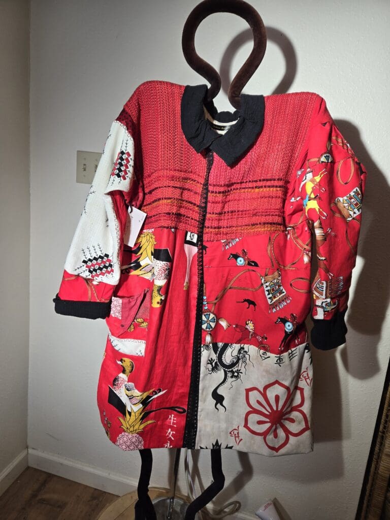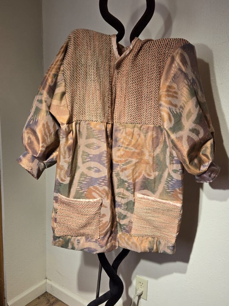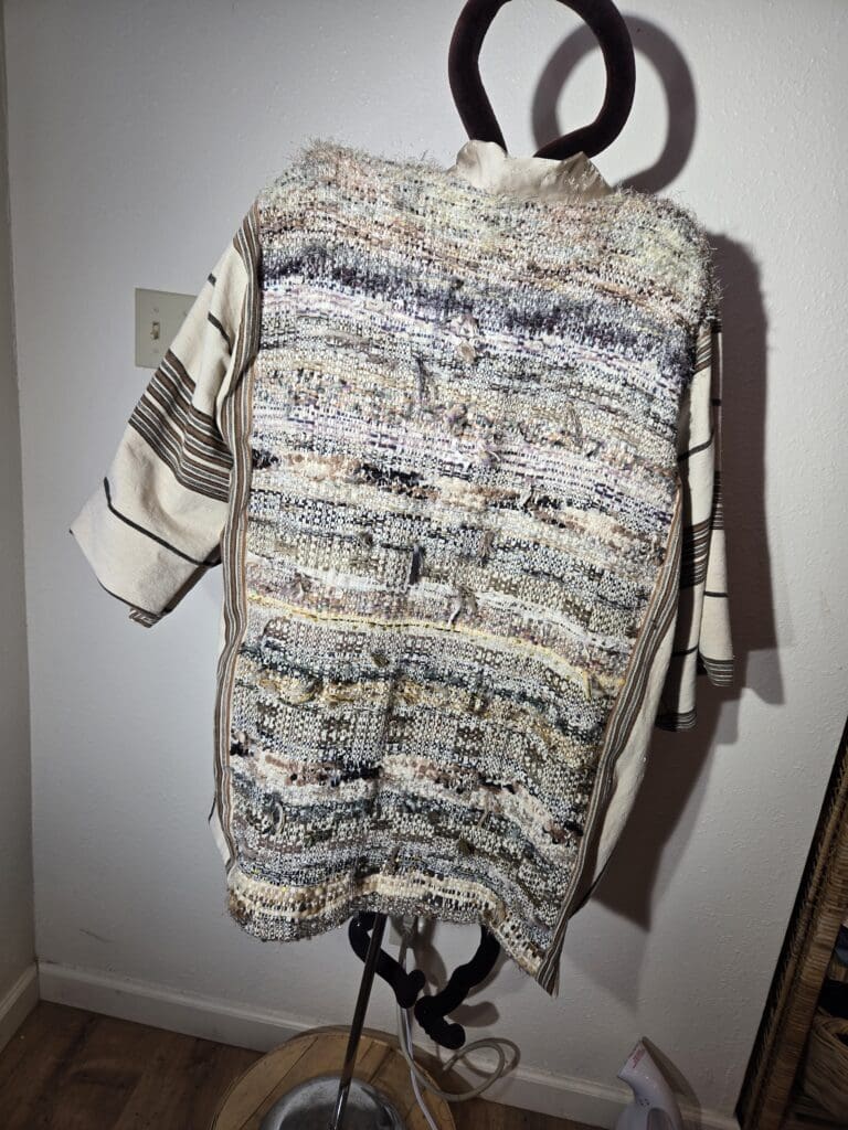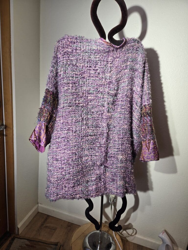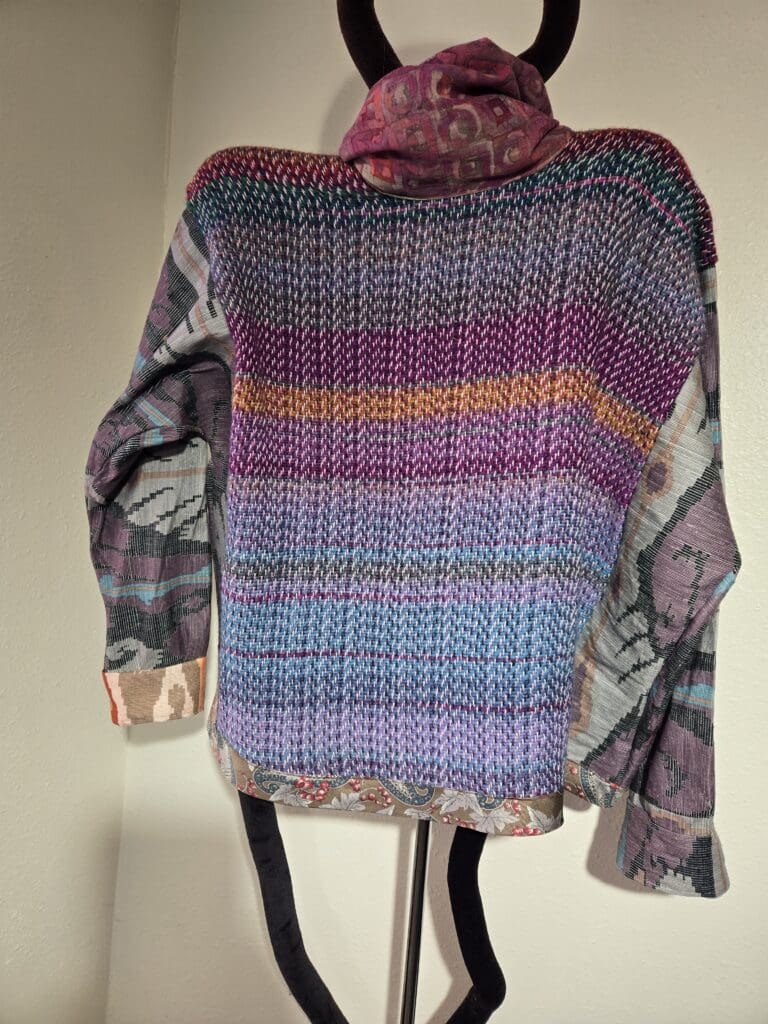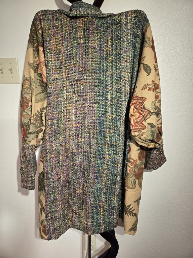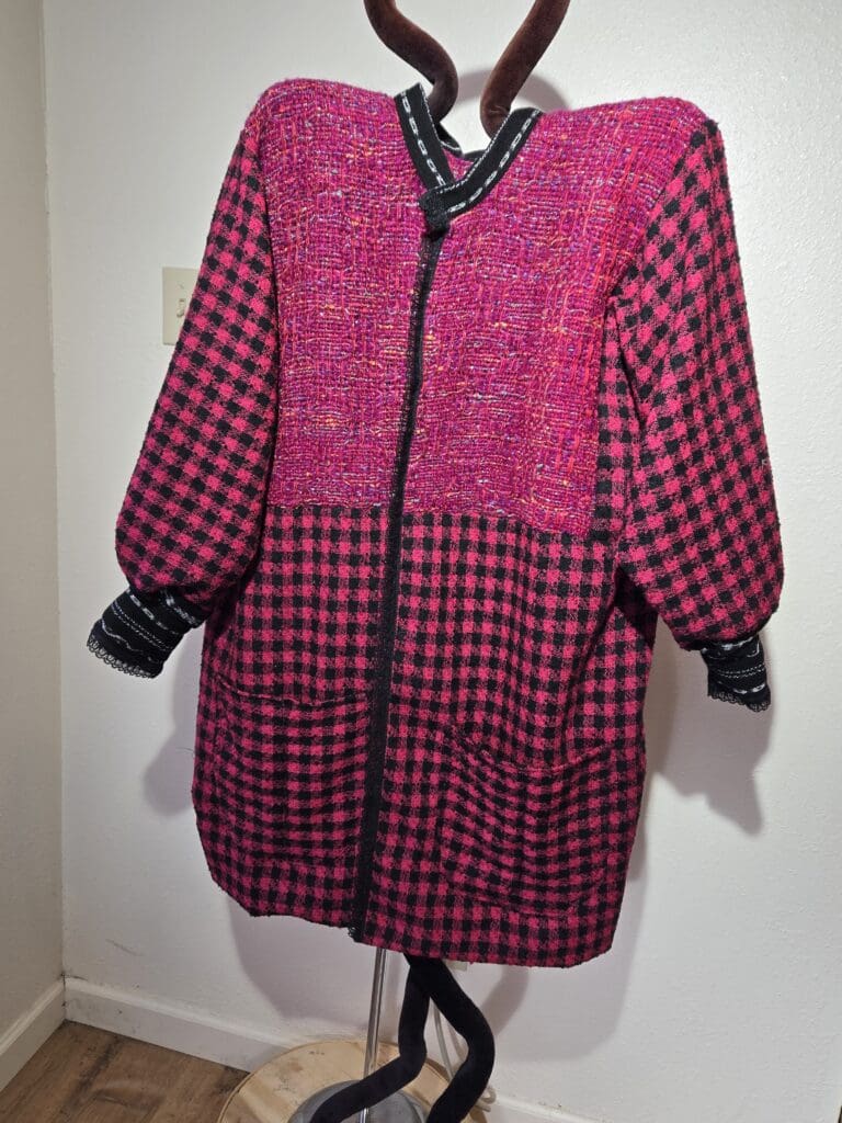 This collection includes jackets and coats that are created through sewing, serging, and mixing fabulous fabrics with Barbara’s own weavings. From custom tailoring to intricate fiber details, these pieces reflect a deep commitment to slow fashion, personal expression, and timeless design.
