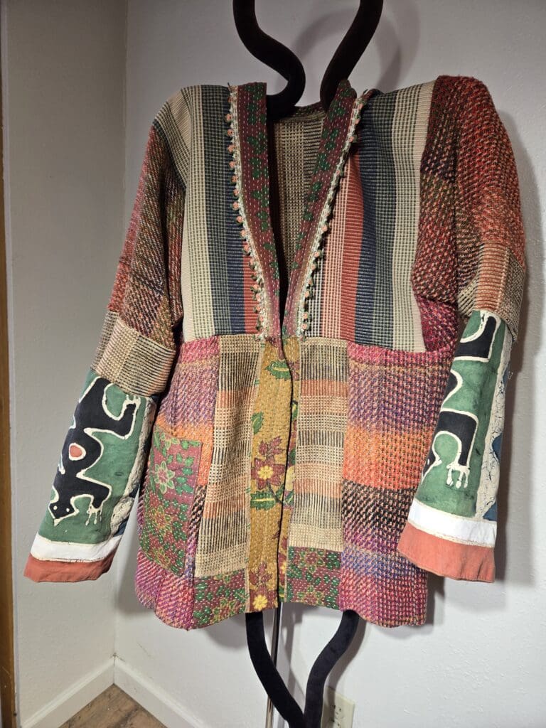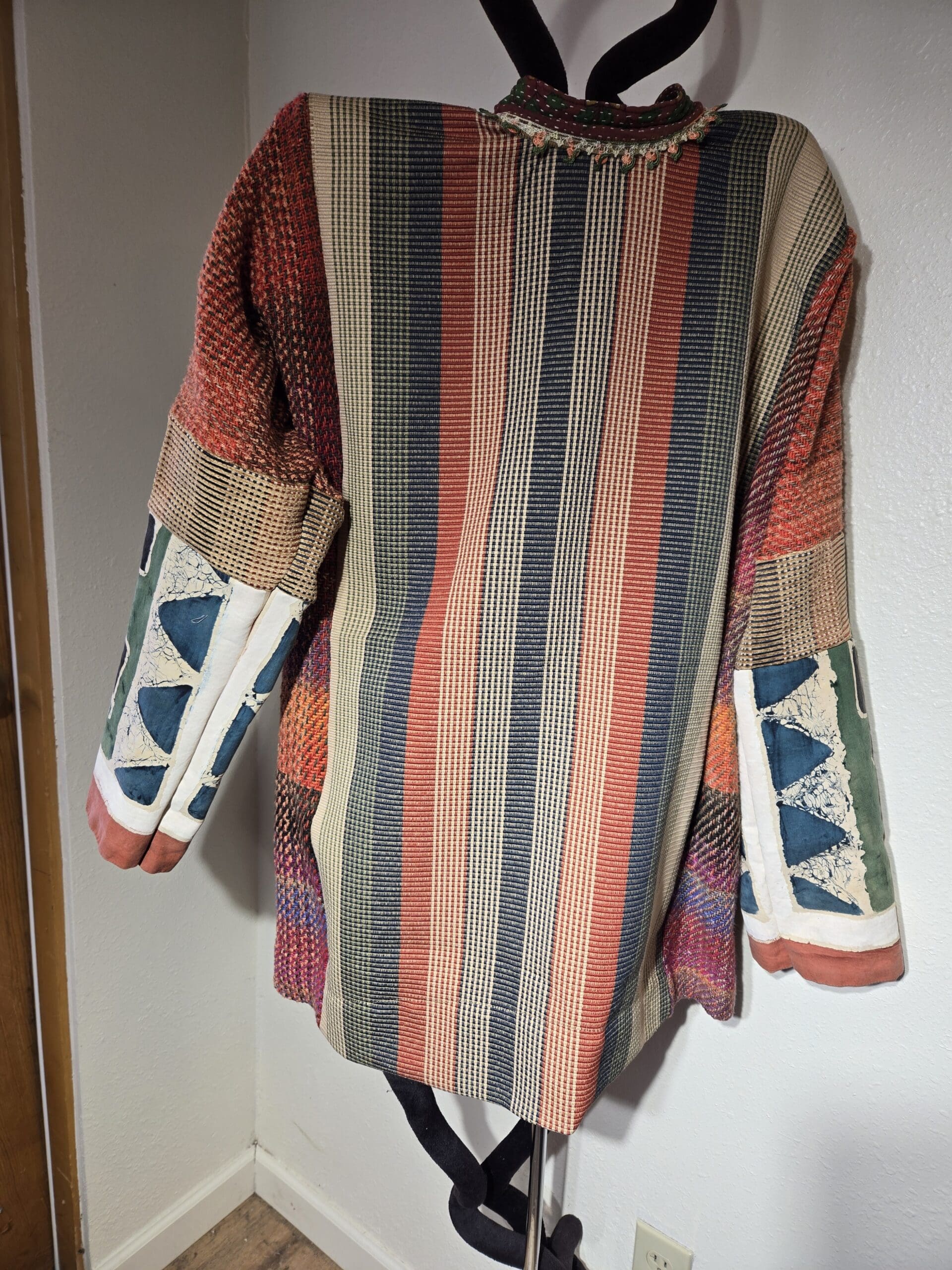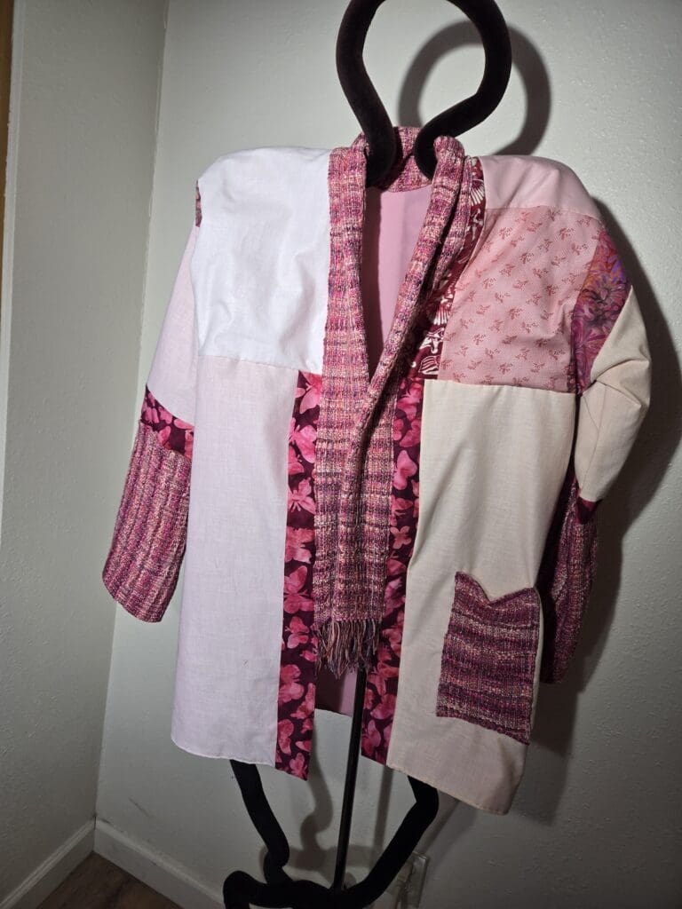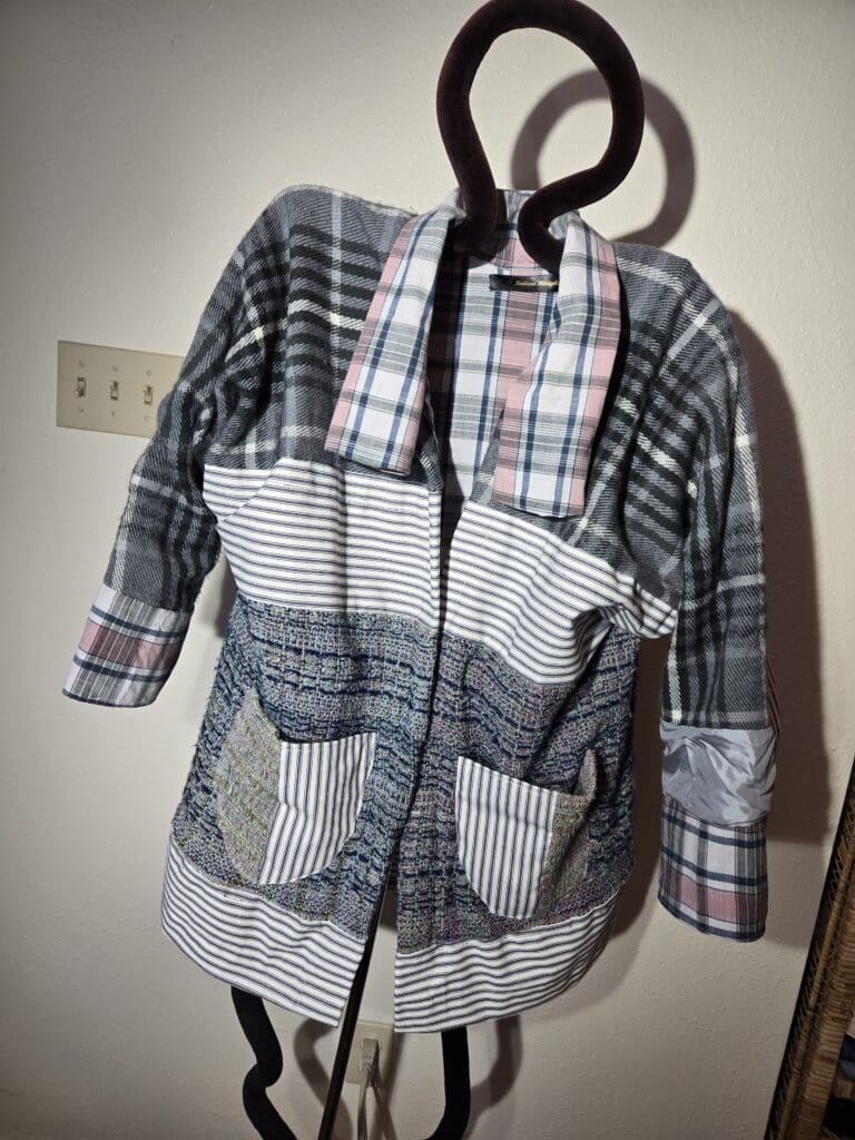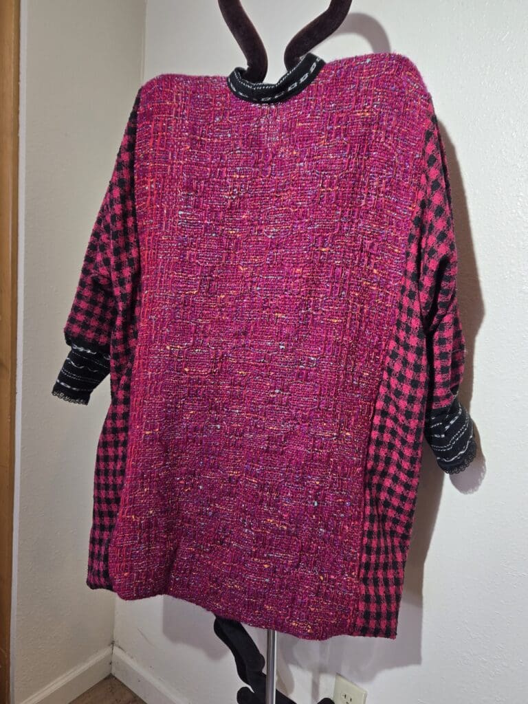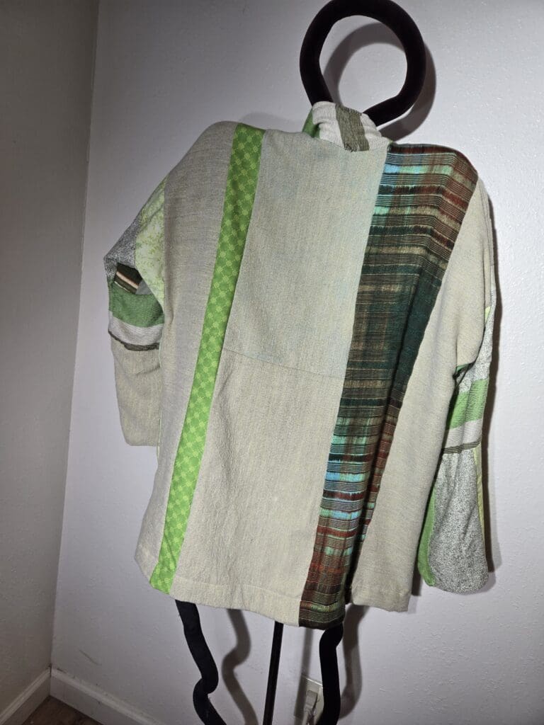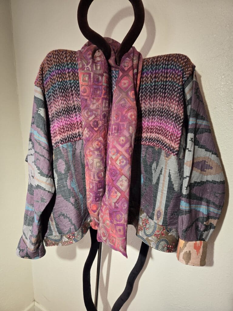 This collection includes jackets and coats that are created through sewing, serging, and mixing fabulous fabrics with Barbara’s own weavings. From custom tailoring to intricate fiber details, these pieces reflect a deep commitment to slow fashion, personal expression, and timeless design.