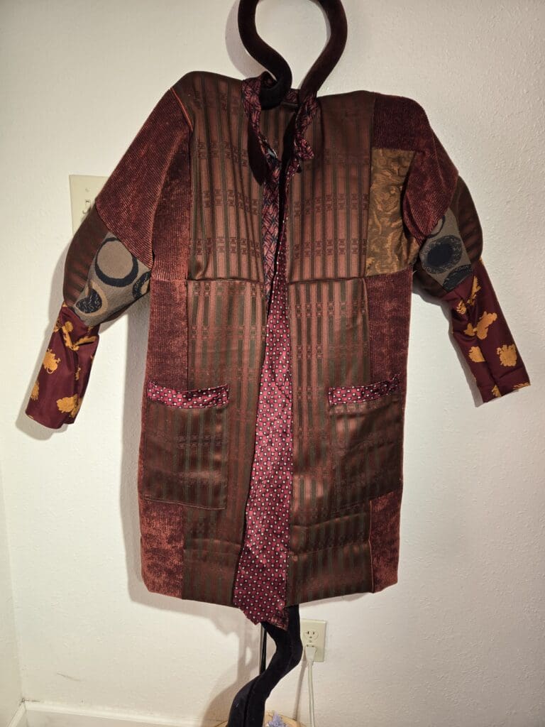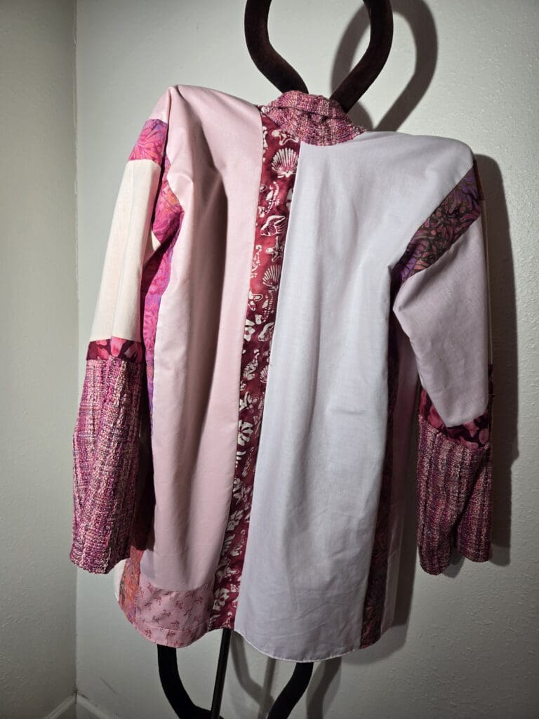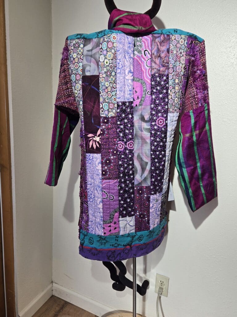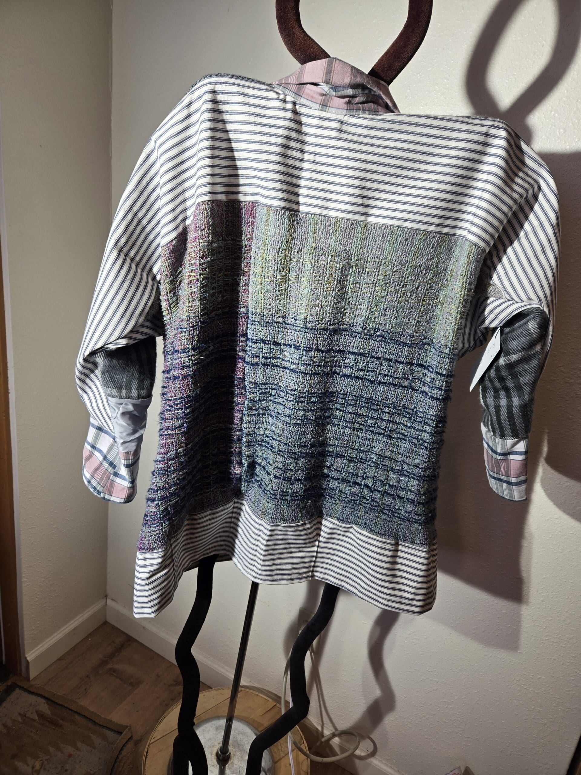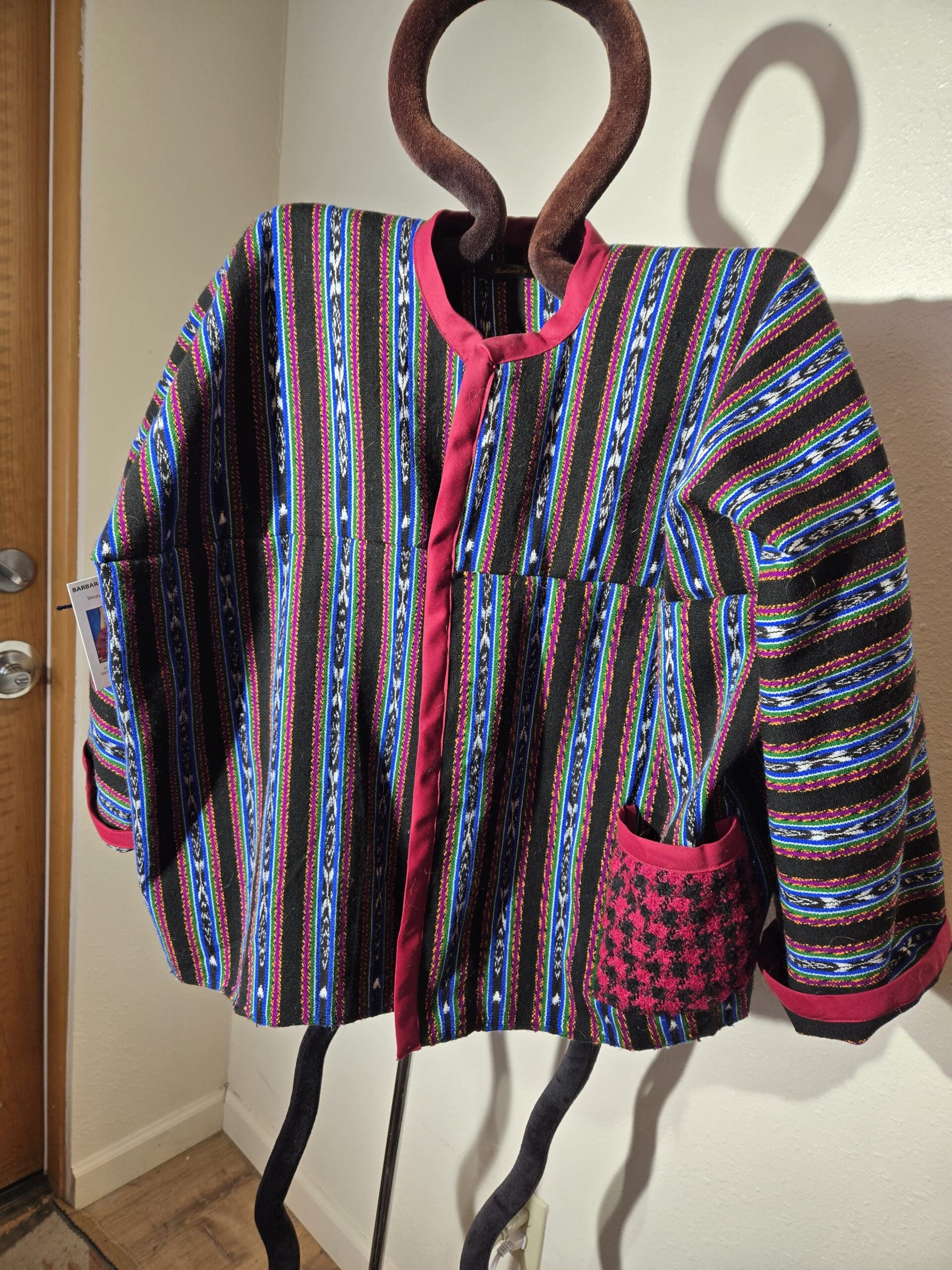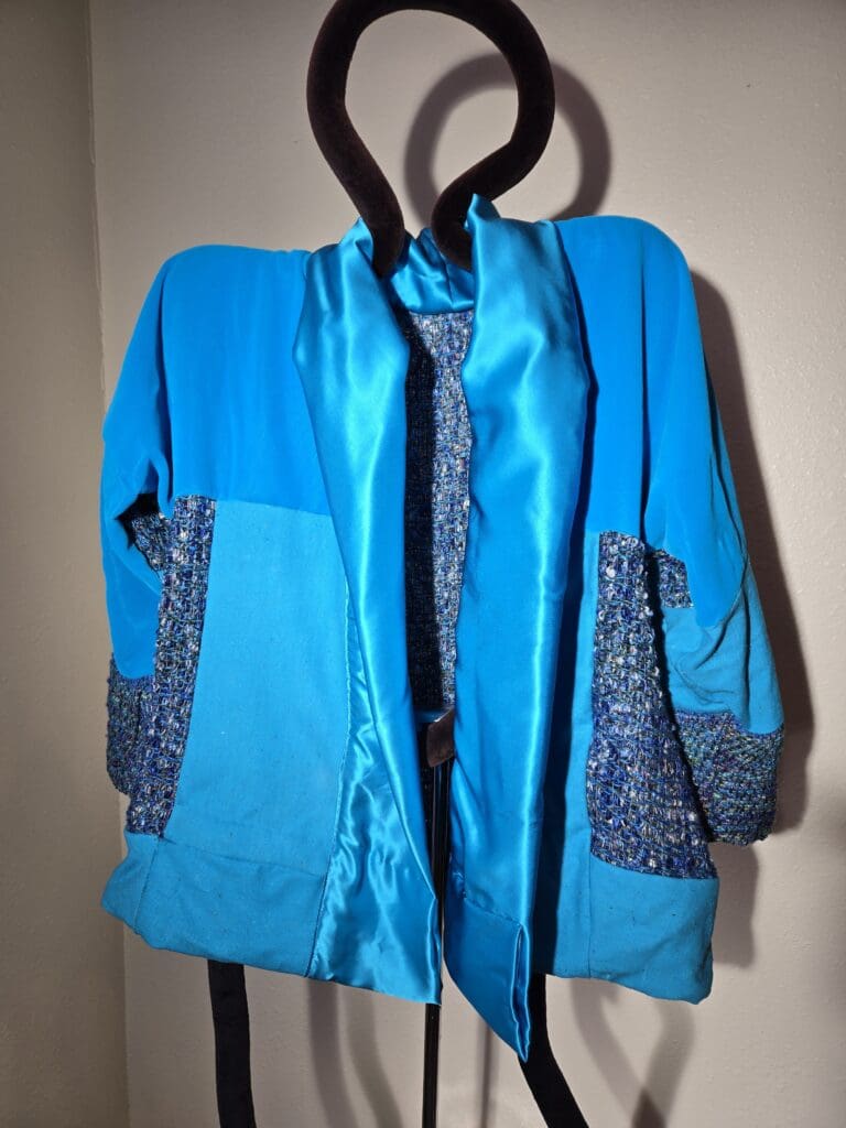 This collection includes jackets and coats that are created through sewing, serging, and mixing fabulous fabrics with Barbara’s own weavings. From custom tailoring to intricate fiber details, these pieces reflect a deep commitment to slow fashion, personal expression, and timeless design.