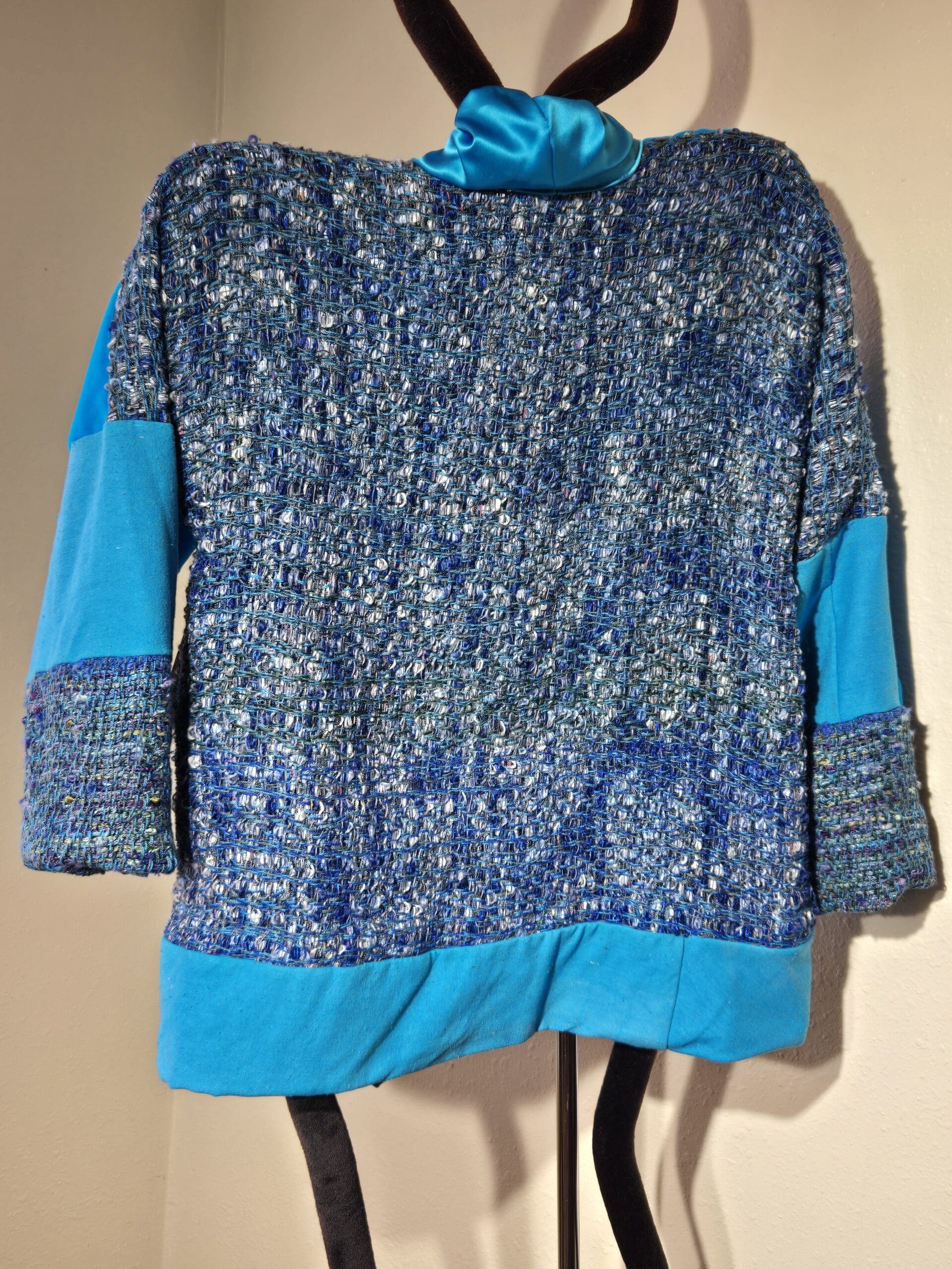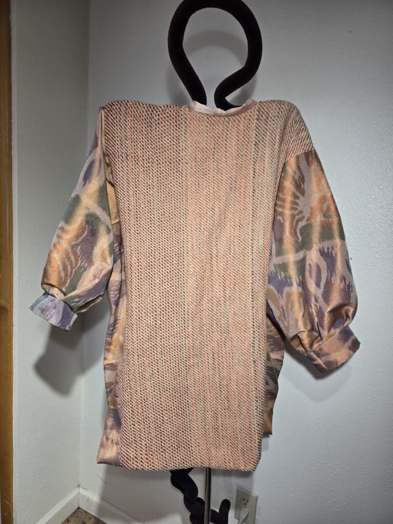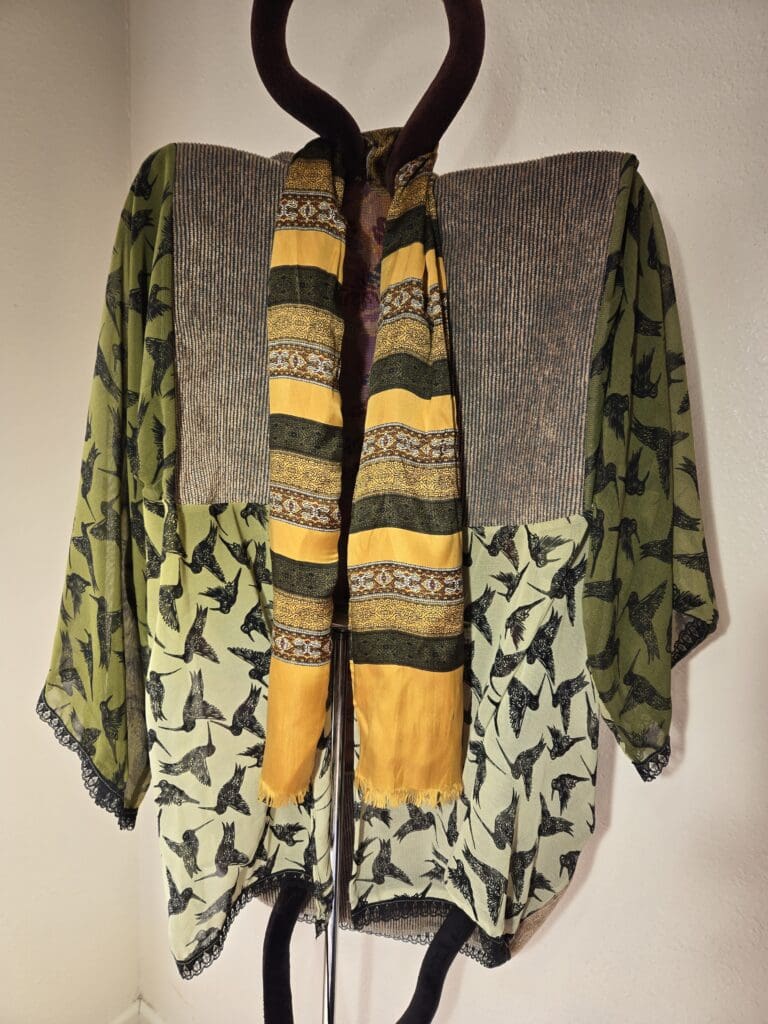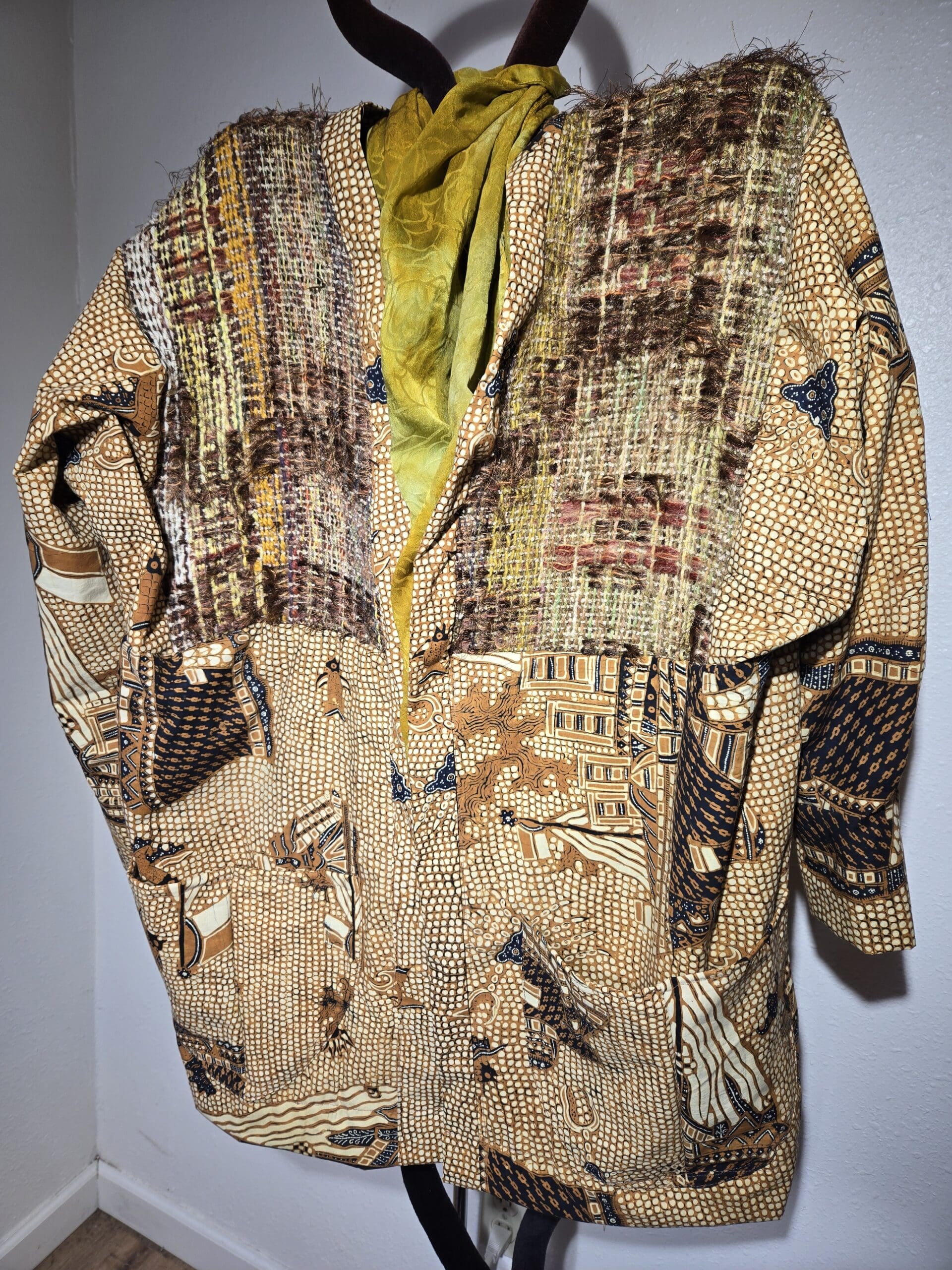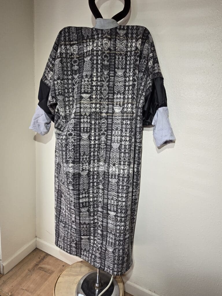 This collection includes jackets and coats that are created through sewing, serging, and mixing fabulous fabrics with Barbara’s own weavings. From custom tailoring to intricate fiber details, these pieces reflect a deep commitment to slow fashion, personal expression, and timeless design.