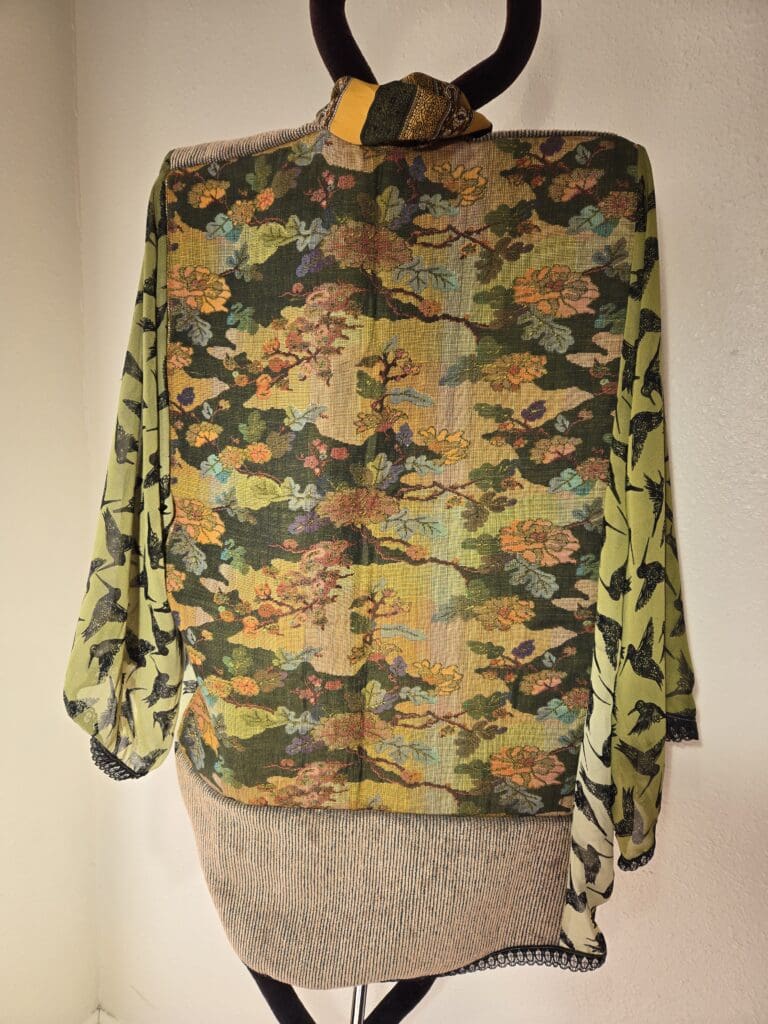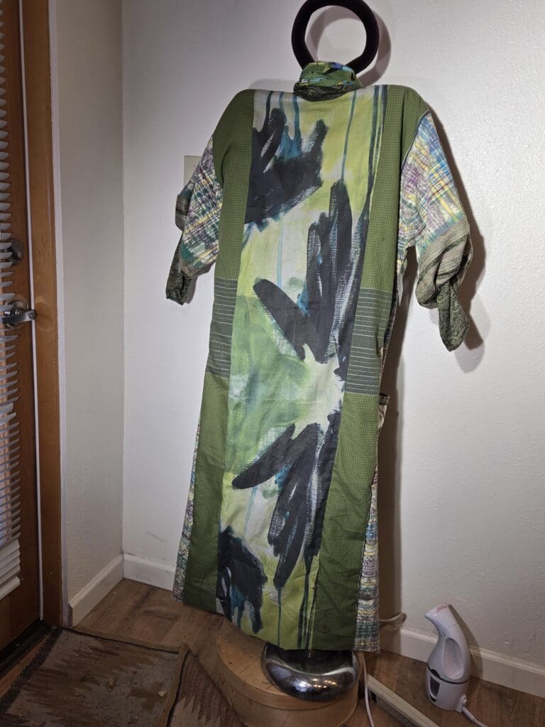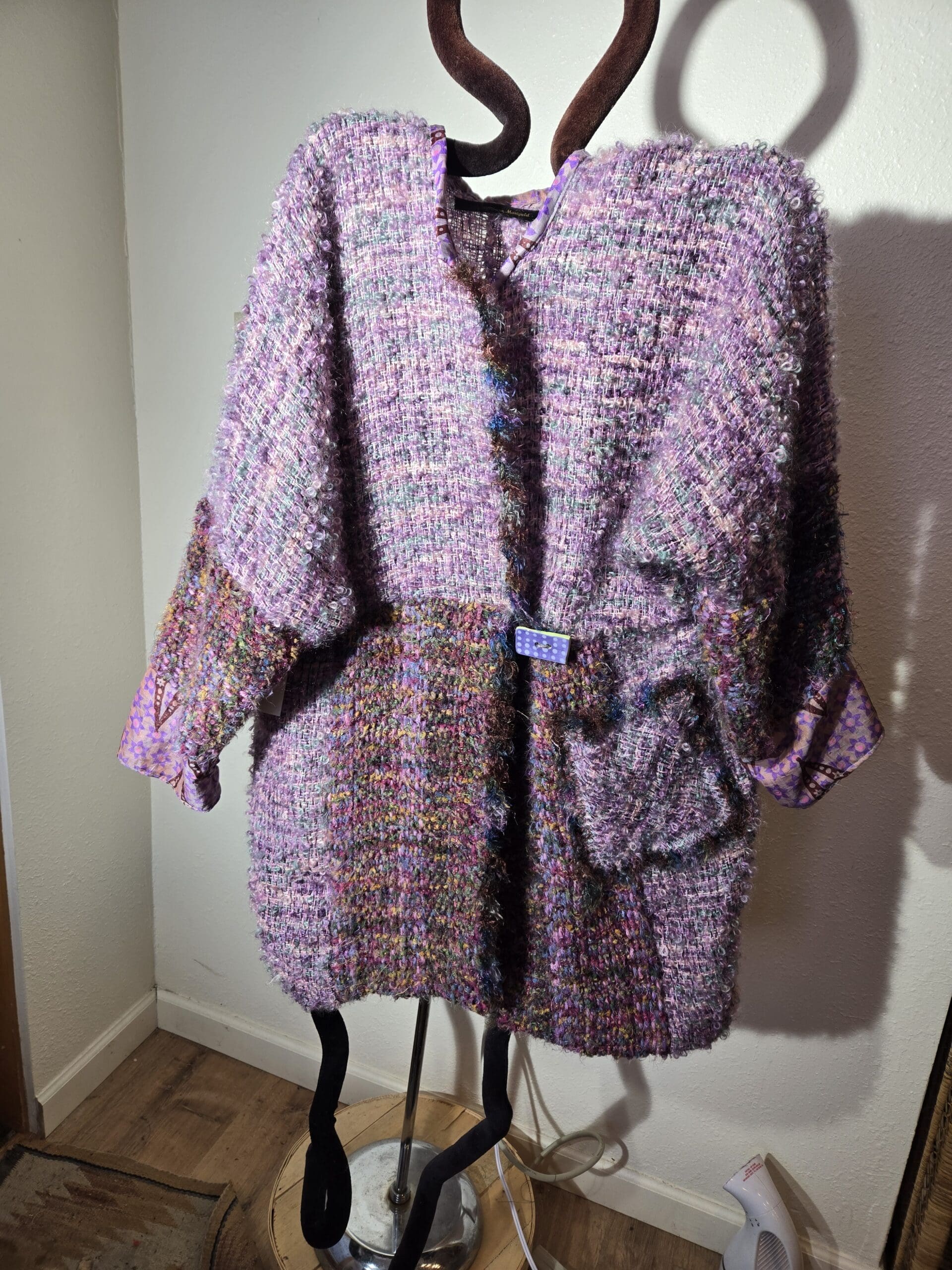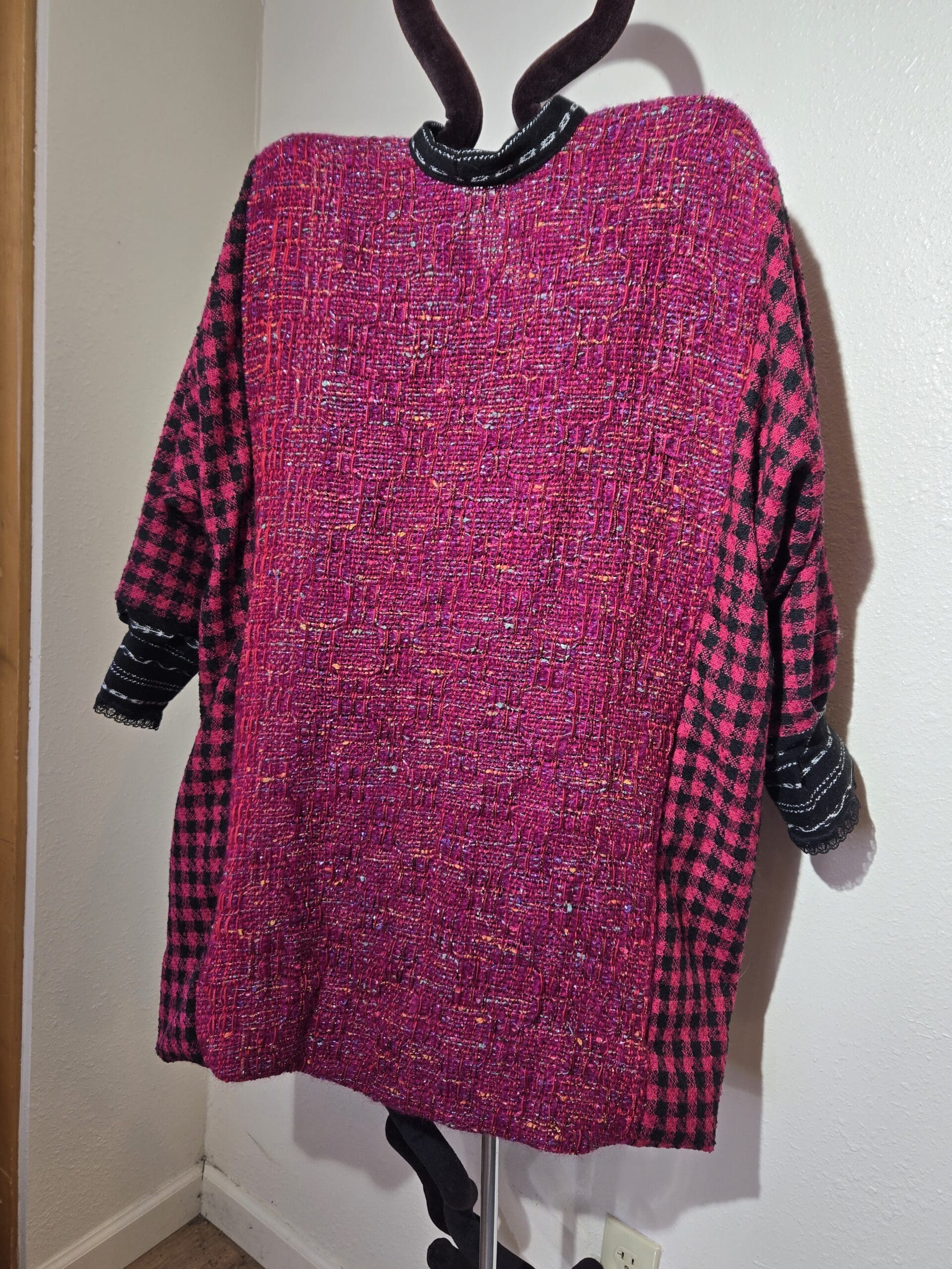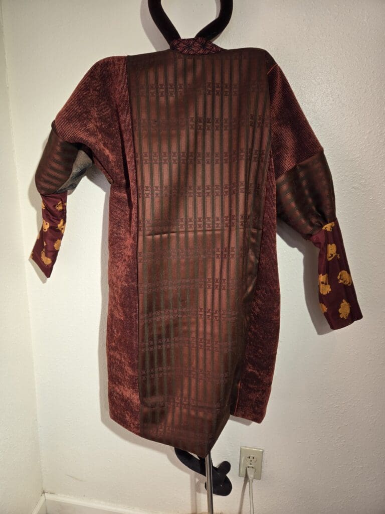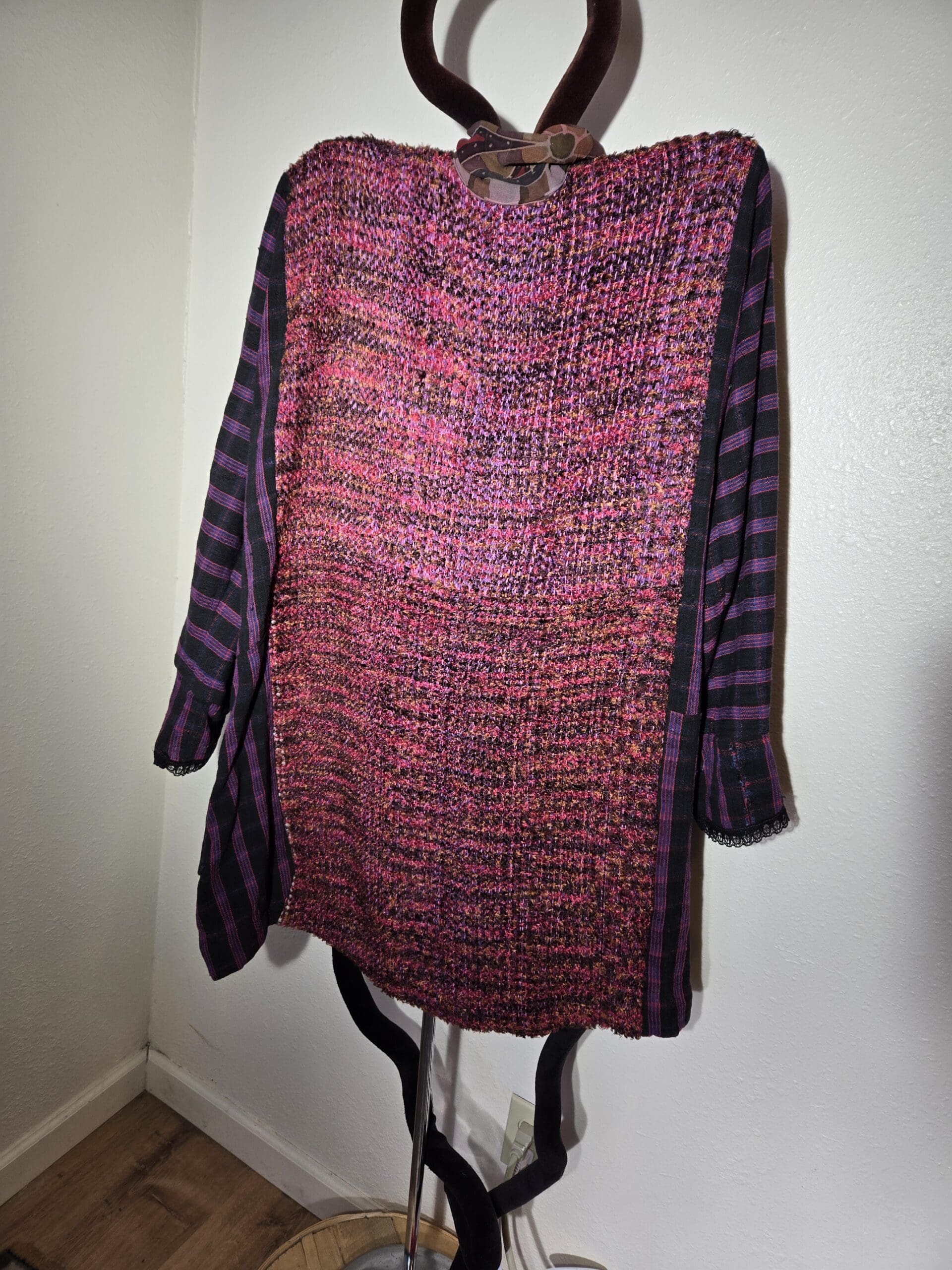 This collection includes jackets and coats that are created through sewing, serging, and mixing fabulous fabrics with Barbara’s own weavings. From custom tailoring to intricate fiber details, these pieces reflect a deep commitment to slow fashion, personal expression, and timeless design.